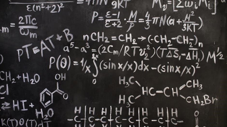 Nomenclature involves systematically naming organic compounds using IUPAC rules, focusing on functional groups, substituents, and stereochemistry. Structure elucidation requires analyzing data, such as molecular formulas and spectroscopic information, to determine a compound’s structure. Mastering these skills is essential for identifying and naming complex molecules, a critical ability for success on the ACS exam. Practice with practice problems and past exams will help refine your expertise in these fundamental areas of organic chemistry.