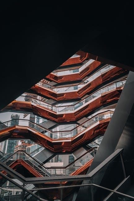 New York City is a showcase for cutting-edge architecture‚ with modern marvels that redefine urban design. The Vessel at Hudson Yards‚ designed by Thomas Heatherwick‚ is an iconic‚ interactive structure that offers breathtaking views. The Shed‚ another Hudson Yards gem‚ features a retractable roof‚ blending art and architecture seamlessly. Buildings like 53 West 53rd Street‚ with its dramatic silhouette‚ and One Vanderbilt‚ with its sleek‚ towering presence‚ exemplify innovative engineering and design. These contemporary landmarks not only transform the skyline but also set new standards for modern architecture‚ inspiring designers and architects worldwide with their creativity and functionality.
