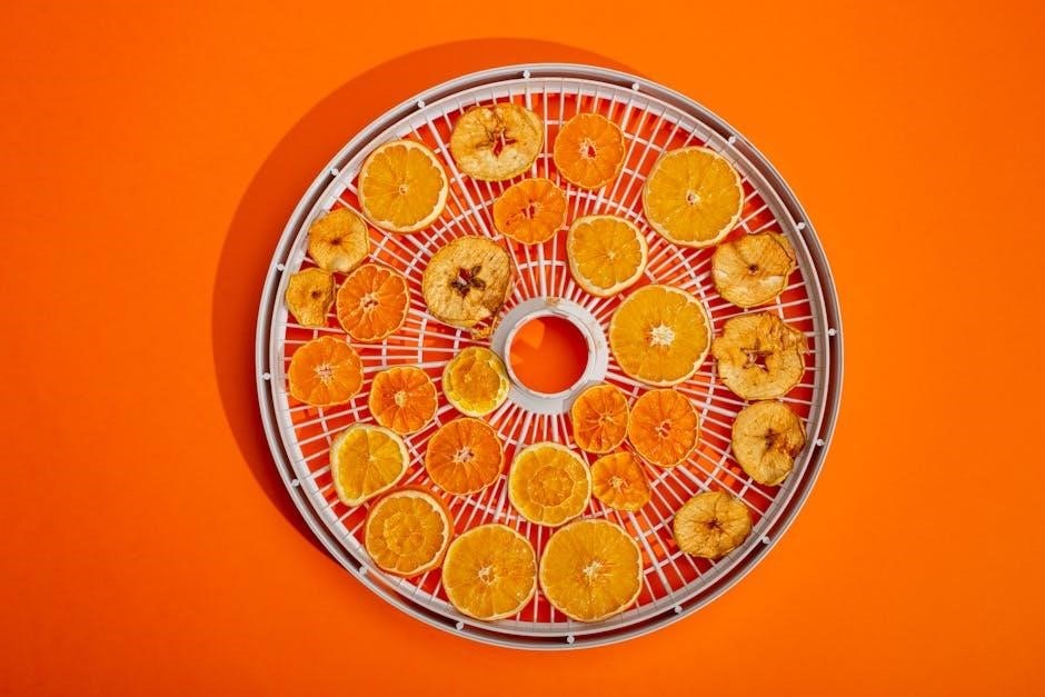Consistent airflow ensures even drying, eliminating rotation․ Enjoy healthy, preservative-free snacks like apple chips or fruity additions to trail mixes!